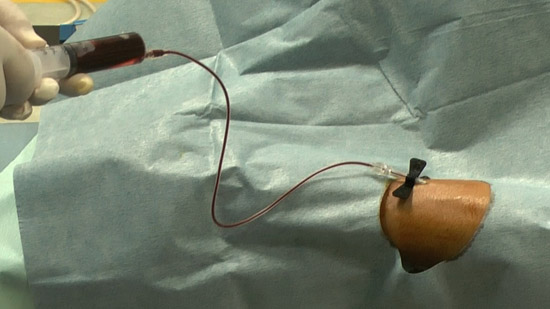 Successively, inject all the autologous blood.