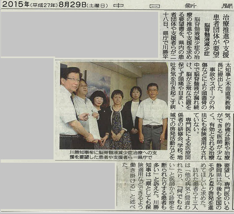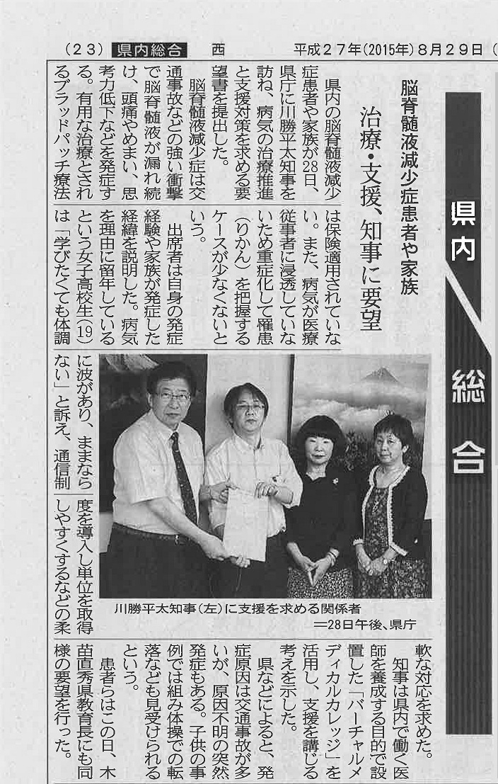 県に負担軽減の対策要望 脳脊髄液減少症患者支援の会>詳細