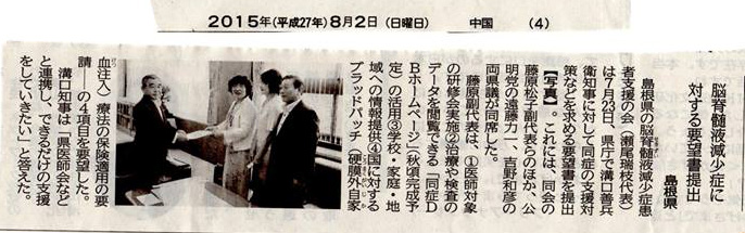 島根県溝口善兵衛県知事への要望 脳脊髄液減少症患者・家族支援協会
